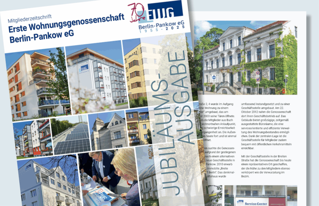 Wir sind eine im Stadtbezirk Berlin Pankow ansässige Wohnungsgenossenschaft mit rund 4.900 Mitgliedern und verwalten über 3.700 Wohnungen und Gewerbeeinheiten. Unsere Genossenschaft bietet seit über